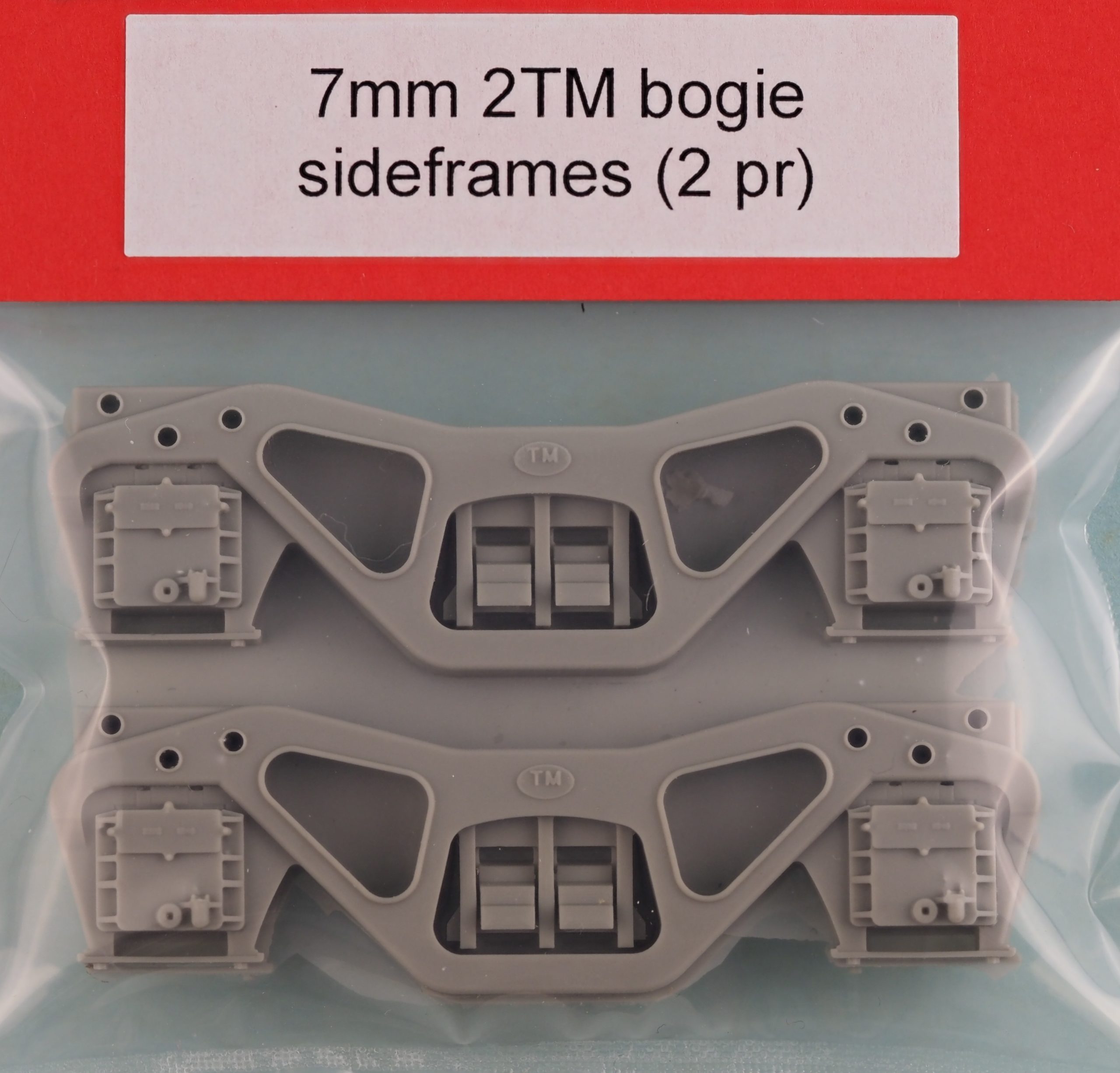 Four flat-backed sideframes for 2TM bogies cast in urethane.